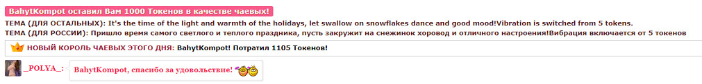By clicking the button, you will be raising _POLYA_ to the first position on the main page for 60 seconds. During this time the model's chat room will become much more visible and incredibly popular! A notification about your action will appear in the chat, visible to the model and the other chat users. _POLYA_ will be sure to appreciate this gesture and be immeasurably grateful to you!